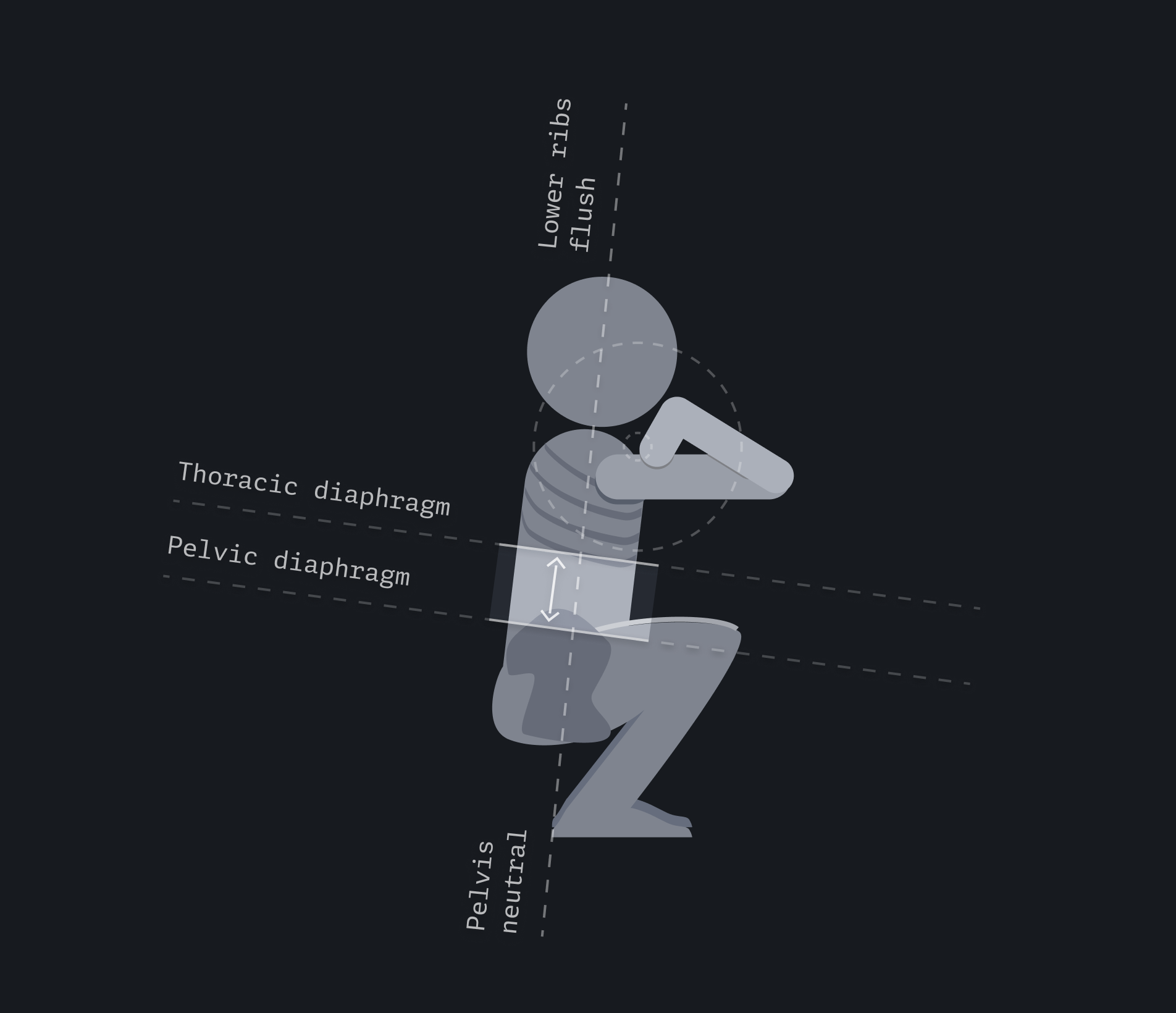 - 2 second pause at the top to emphasize the pelvis-ribcage stack